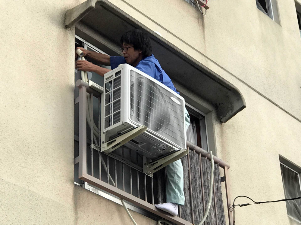 団地が多く建てられた50年前は、エアコンは超贅沢品であり、団地に住む方々には不必要と考えられていた為、設置環境が整っておりません。