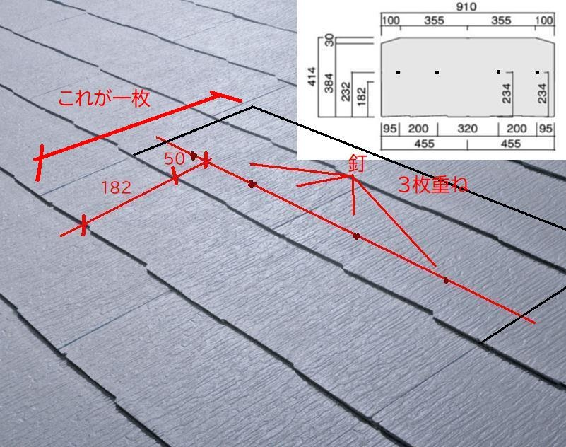 スレート屋根は、最大3枚重ねです。