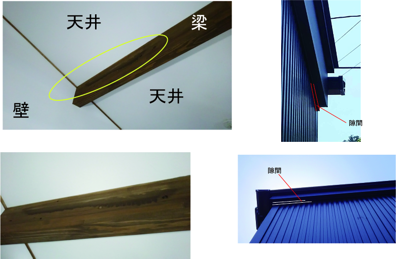 1年点検で、傾斜屋根が乗っかる部分が外壁との隙間が全体的に均一でないことと雨漏りの心配を指摘しましたが、構造上、隙間ができるのはしょうがない。そうそう雨が入り込むことはないと回答されました。