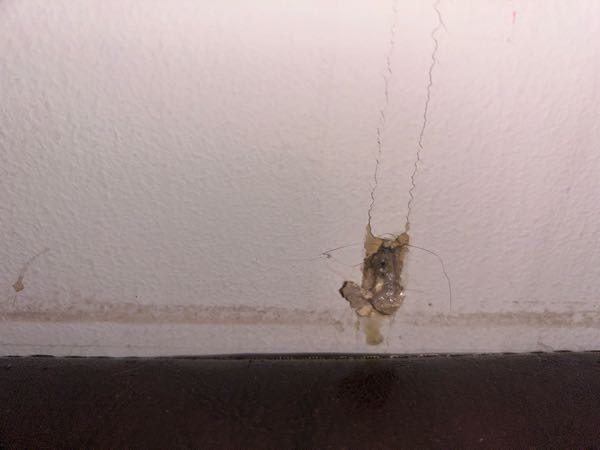 Q 家の内壁についてです。 以前棚をつけていた場所(7年程前に外しました)の穴?から 何かどろっとしたものが出てきています。