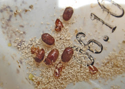 ちなみにゴキブリの卵は卵のうの形でアズキと同じくらいか少し大きく、ガマグチのようになっていてそこに複数入っています。