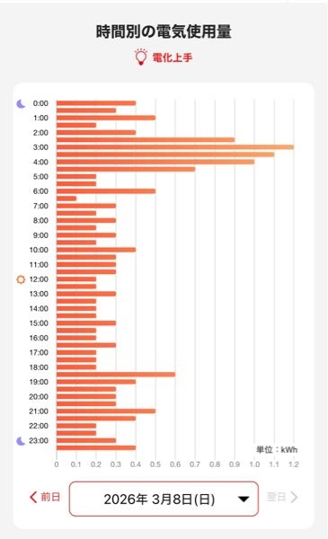 4時前後に使用量が出るのはエコキュートが原因ですね。