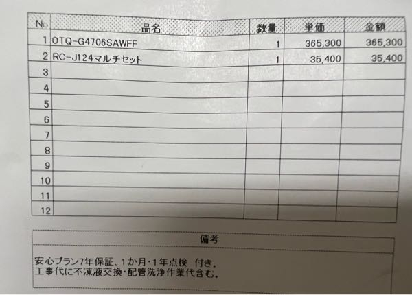 お見積り書がやや大雑把ですね・・・部品単価と工事代が