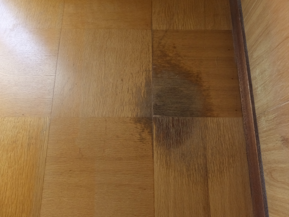 Q 2階の床下がしみています(写真有り) 2階の床下の一部がしみているのです。 (毎日です。それで、軽く拭き取ります。) 原因は何だと思われますか。 よろしくお願いします。
