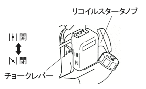 手動式のチョーク機構は、始動して10~20秒ぐらいでエンジンが安定したら止める必要があります。チョークが効いたまま、濃い混合気の状態で長時間運転し続けるのは、エンジンにとって良いことではありません