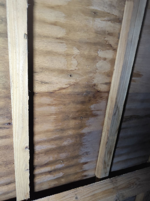 染みの数と大きさを見て、ルーフィングの寿命を判断してください。