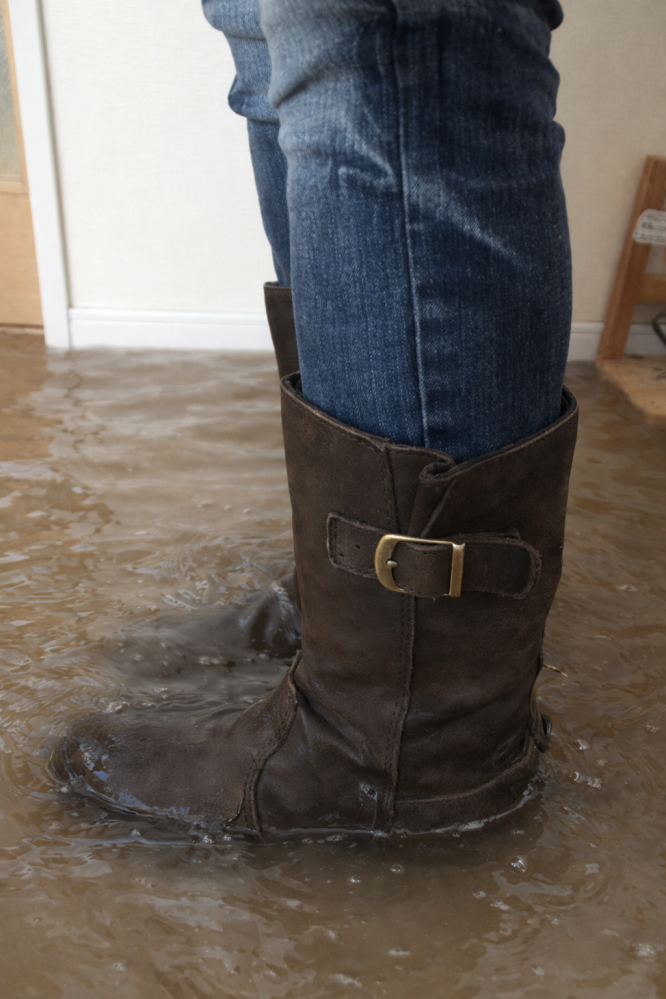 Q イライラしているので今直ぐに回答をお願いします。このようなフローリングの部屋が床上浸水になるとしたらどのようなイメージとなりますか。合成にして欲しいです