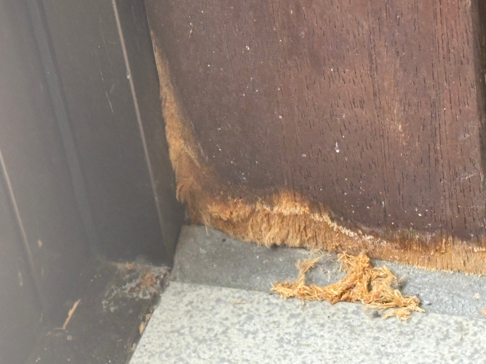 Q 築何十年が経っている一軒家のリノベーション物件を借りているのですが、今日玄関の壁の木を見たらこんなふうに欠けていて、ハムスターを飼っていて何回か脱走しているのですが、ハムスターが噛んだのか、腐食?