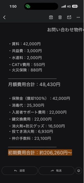 Q マンションを借りようと思っています。 初期費用について質問です。 こちらに住むわけではありませんが以下の写真の初期費用を提示していただきました。