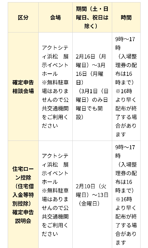 上の区分は「住宅ローン控除を含む」確定申告の相談会で、その期間は(上述の説明会が終わった)2月16日「から」です