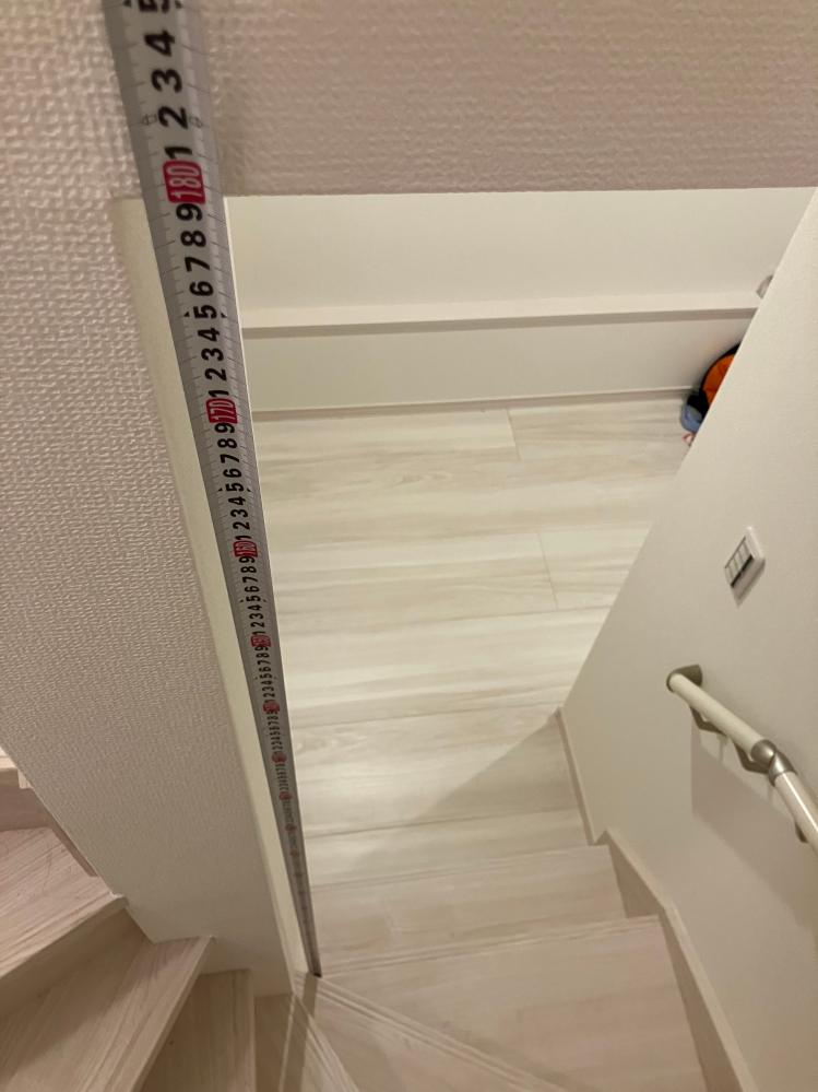 が、先ほど気づいたのですが、1階から2階に繋がる階段の天井に出っ張りがあり、そこの高さが階段から179センチしかありませんでした。