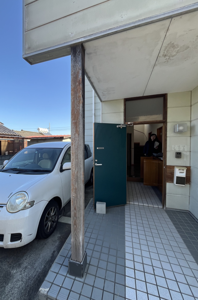 玄関庇上の天井を開ければ柱の交換やプラスして袖壁を作成すれば補強になります。(玄関庇上の天井が濡れているので確認も必要です)