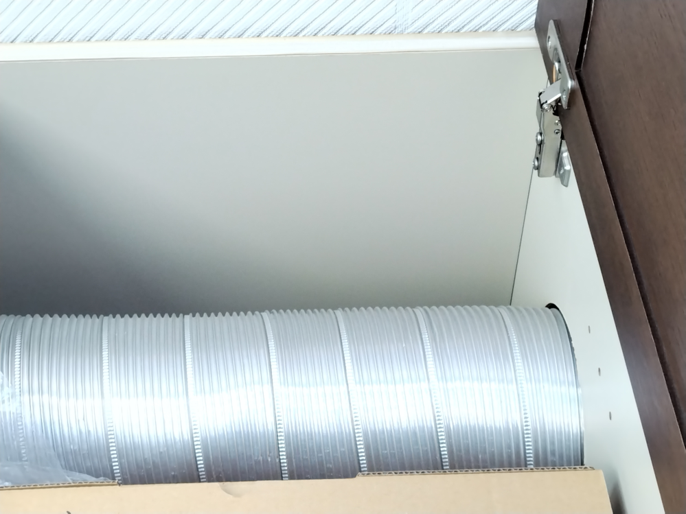 Q 20年前にリフォームしたキッチン換気扇の排気ダクトが天井裏ではなく、家の中を通っているのですがそんなものですか? ダクトが吊り下げ棚の中にあります。