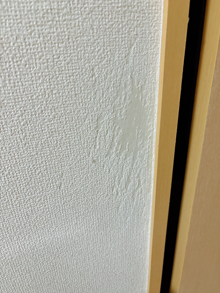 人間が帰ってきたときにドア横の壁でガリガリしてしまい、他の箇所には傷はなく、この部分だけです。大きさは30cm程です。
